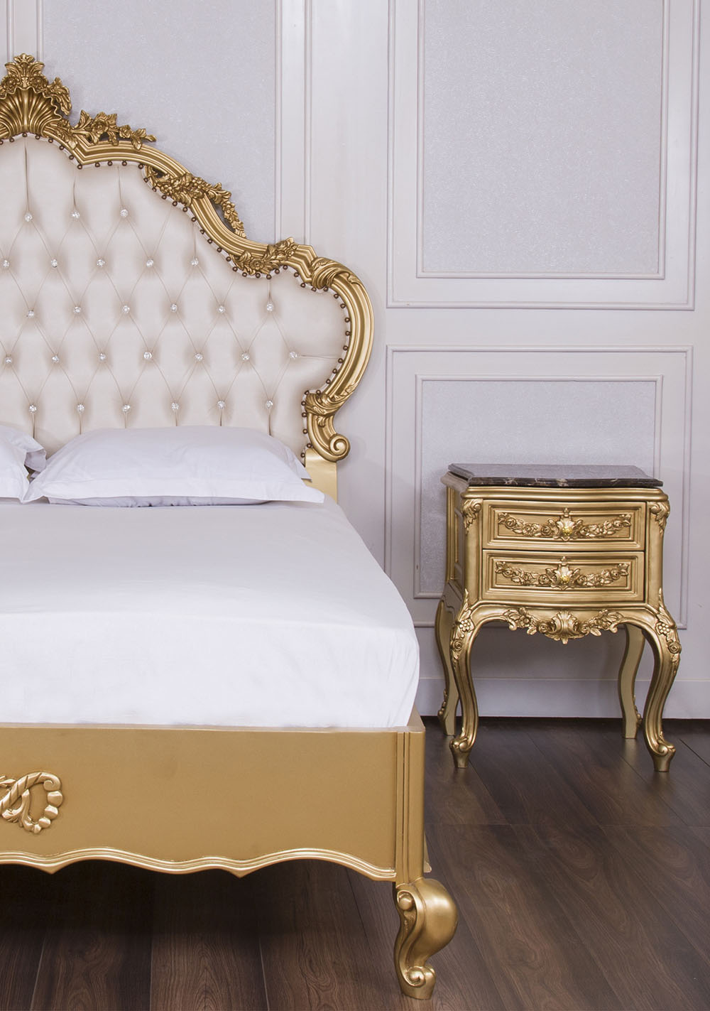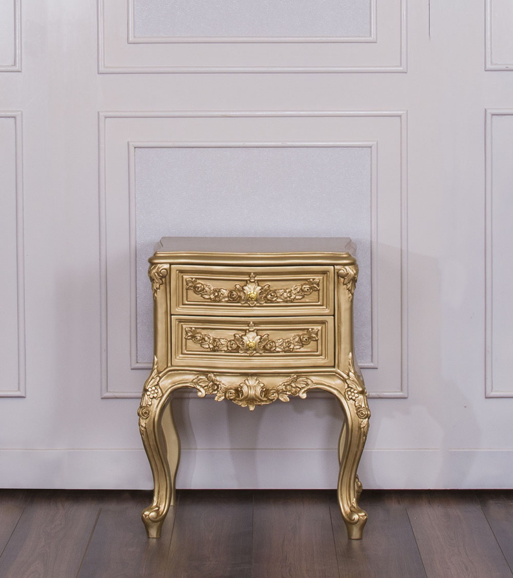 AMUN Bedside Drawers are all gold with hand crafted details to enhance richness. These beautiful drawers are elegant and complete your lavish boudoir with extreme beauty. (Sold Individually)