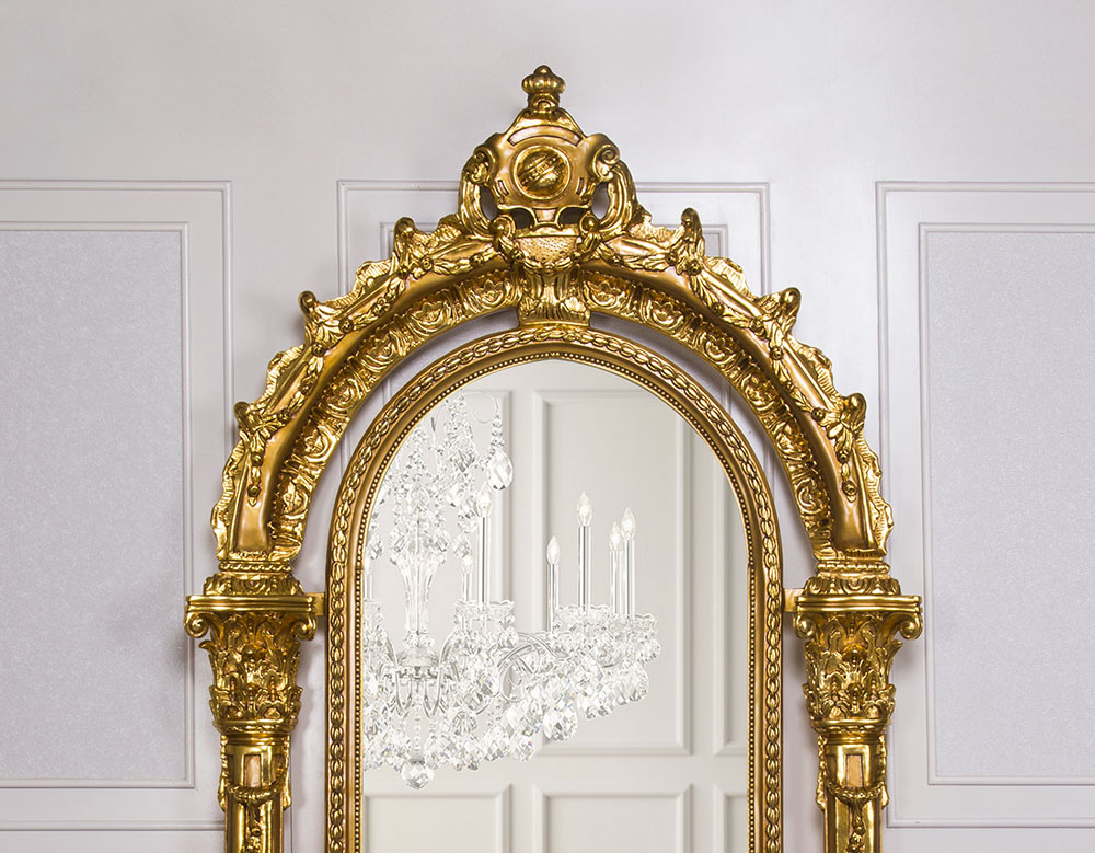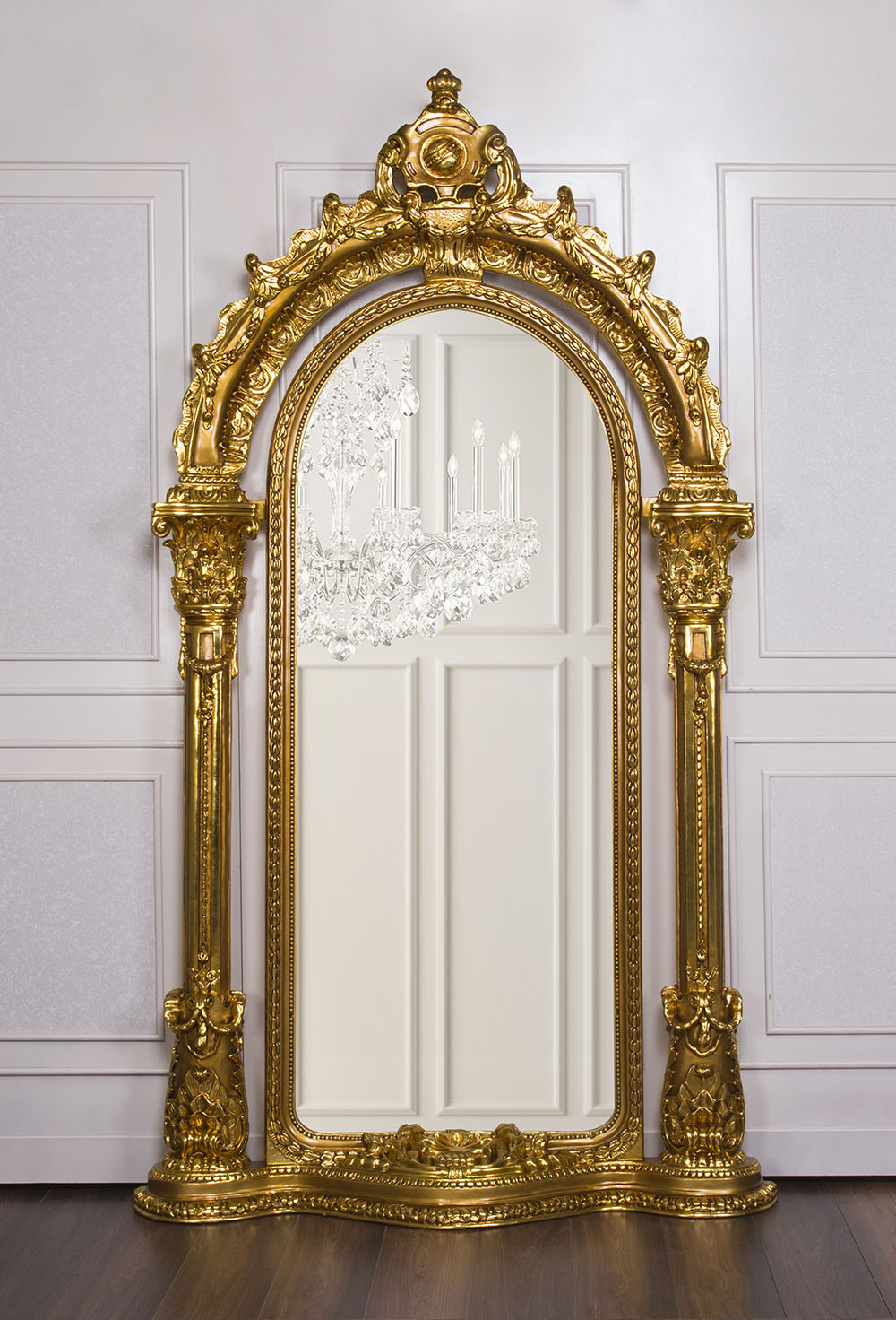 AMUNHOTEP is our luxury gold floor standing mirror which is an exceptional tailored mirror which has been crafted in gold with a lacquered finish for that luxurious interior to element space, its unique and impressive to enhance royalty and luxurious to give a touch of elegance to your environment. This mirror certainly adds a statement to your living.