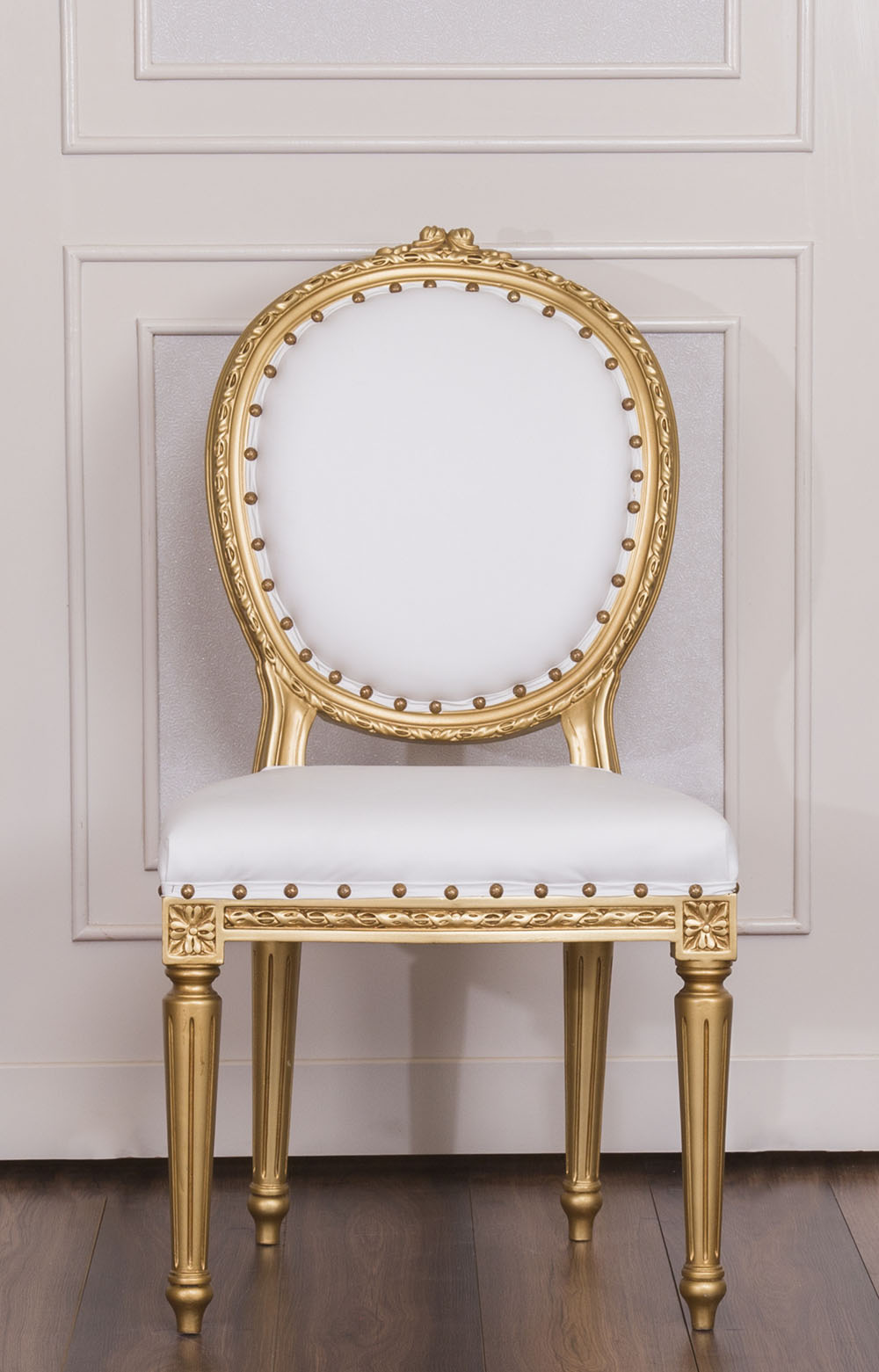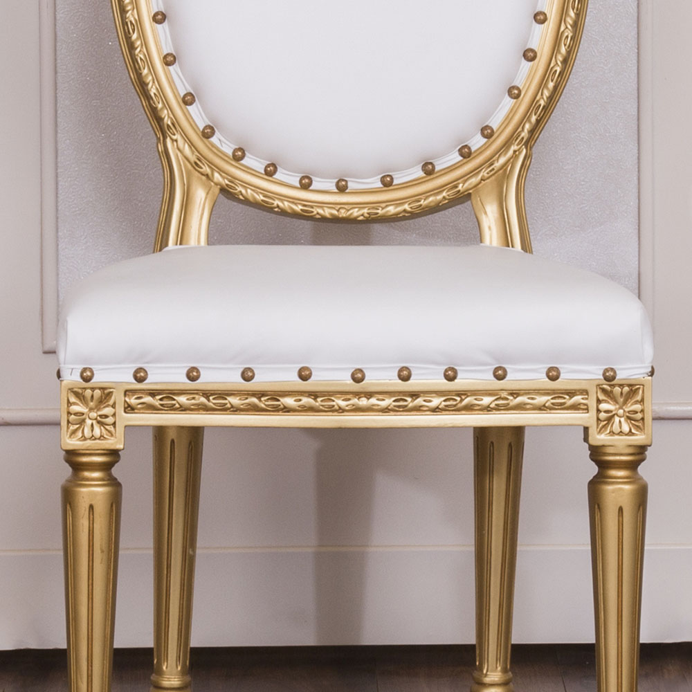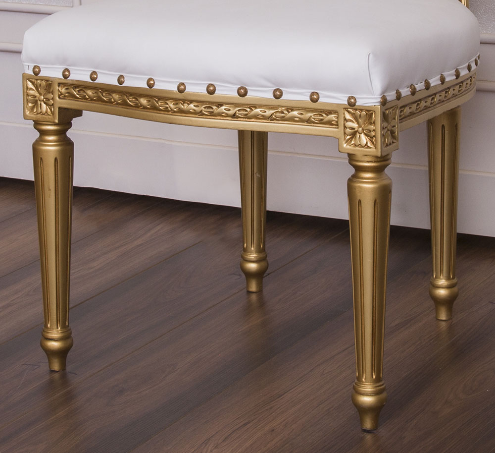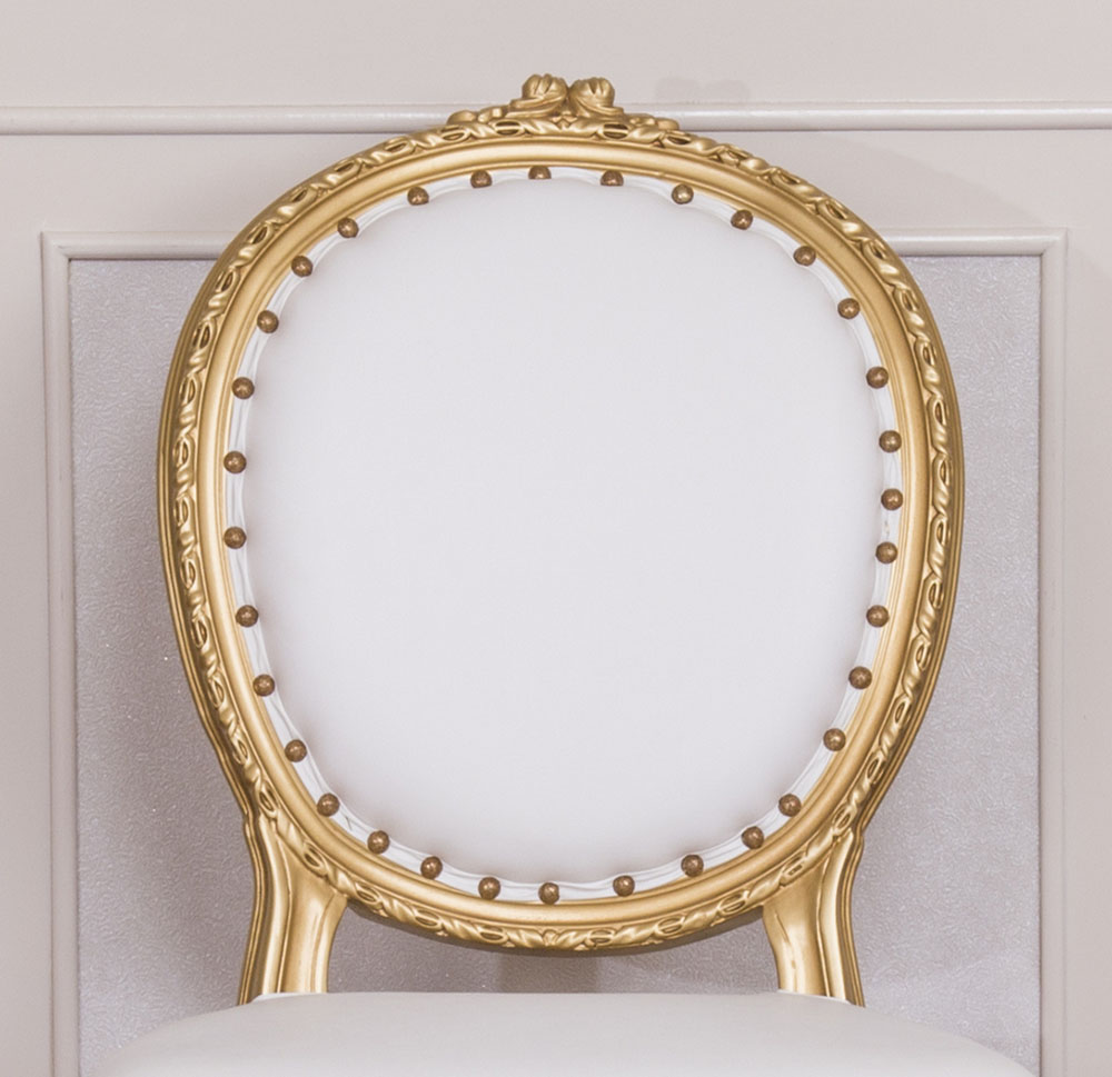 Antique Style Dining Chair with a Gold wooden Frame and White Faux Leather to bring the flavour of East to your luxury living.