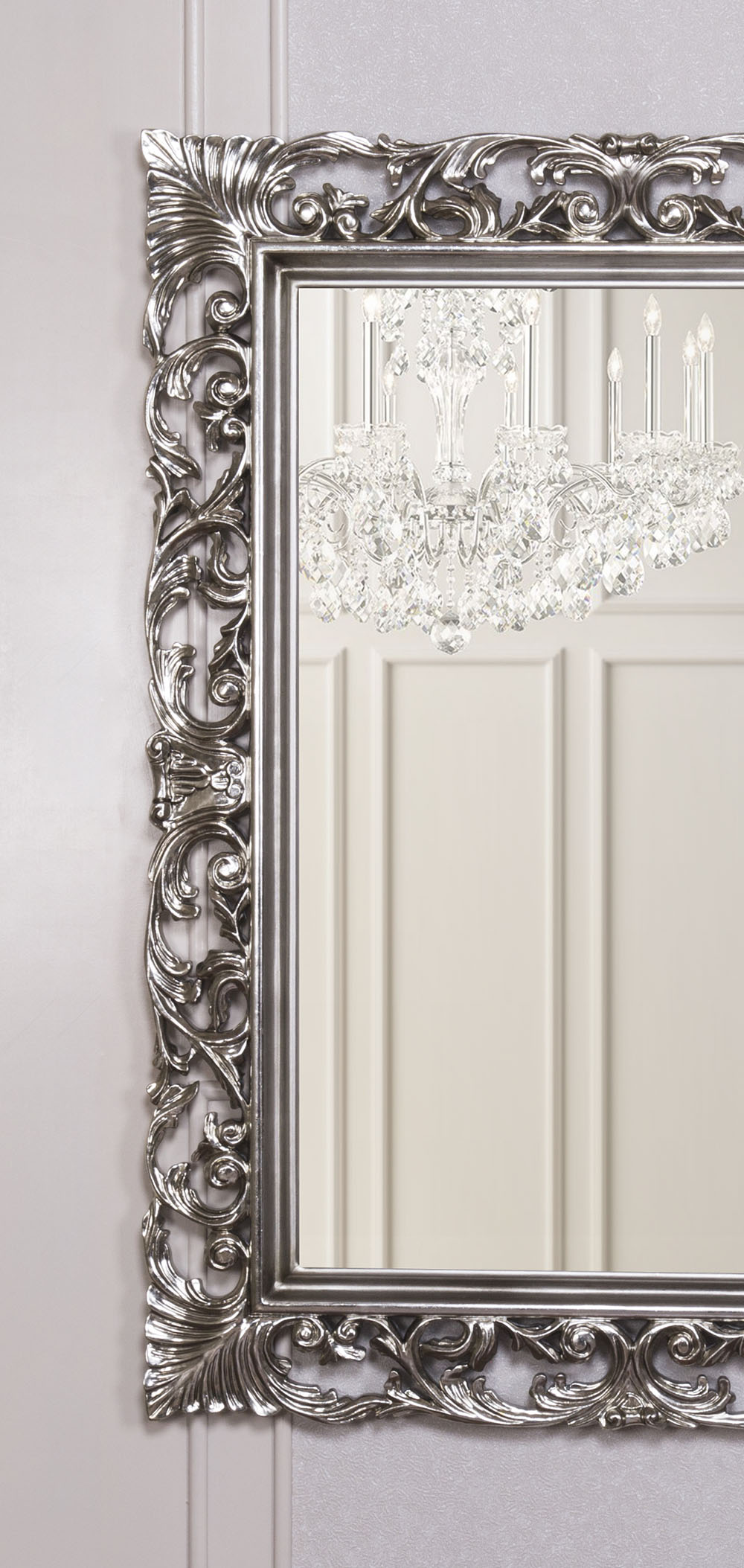 Inspire yourself with our KHEPRE range of Baroque mirrors, solid wood that has been hand carved and crafted in various designs with sculptured fine details for your luxury interior in Silver.