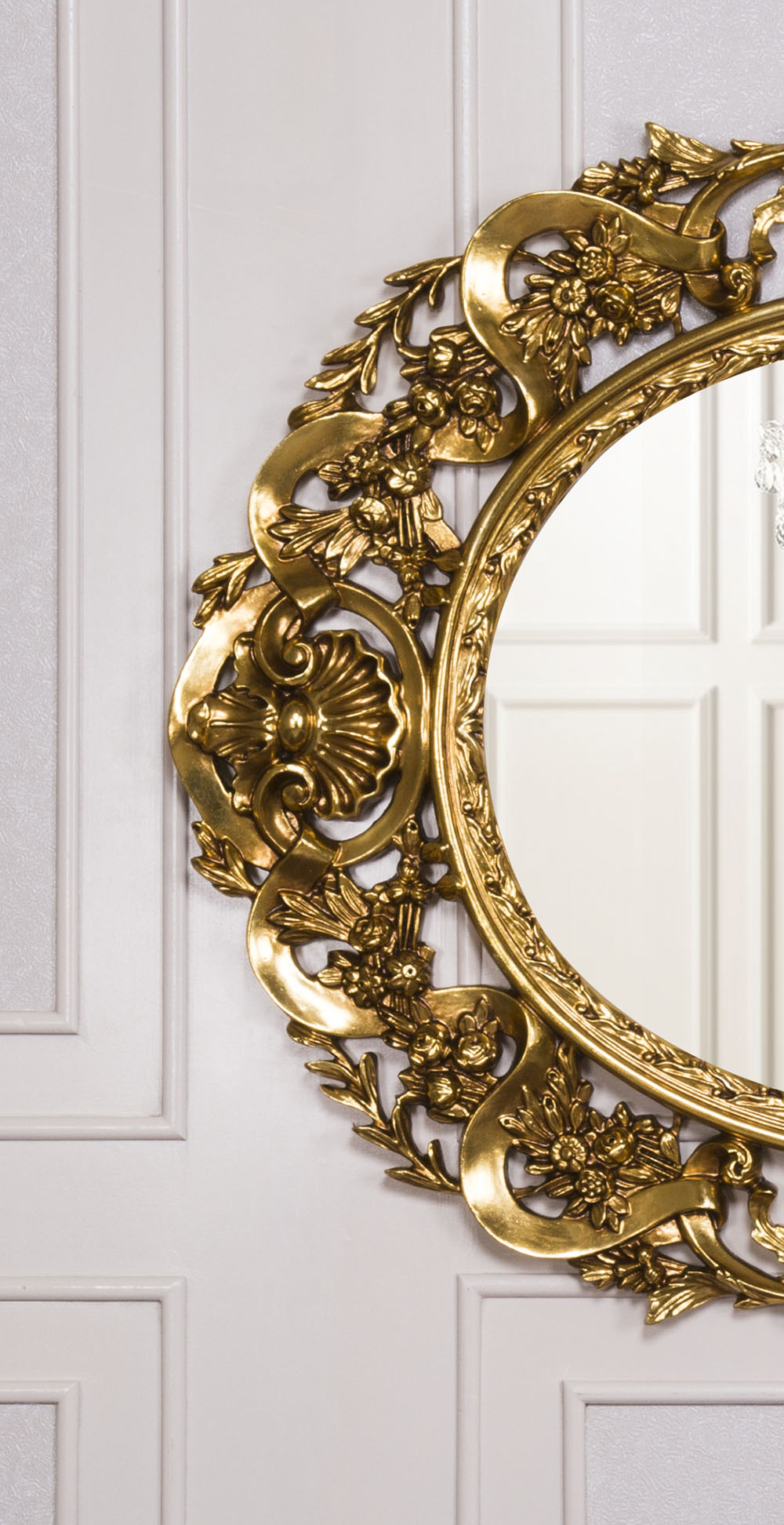 Inspire yourself with our LABET range of ornately designed mirrors, solid wood hand carved and crafted in various designs with sculptured fine details for your lavish interior,  a rocco style for defined decoration in Gold.