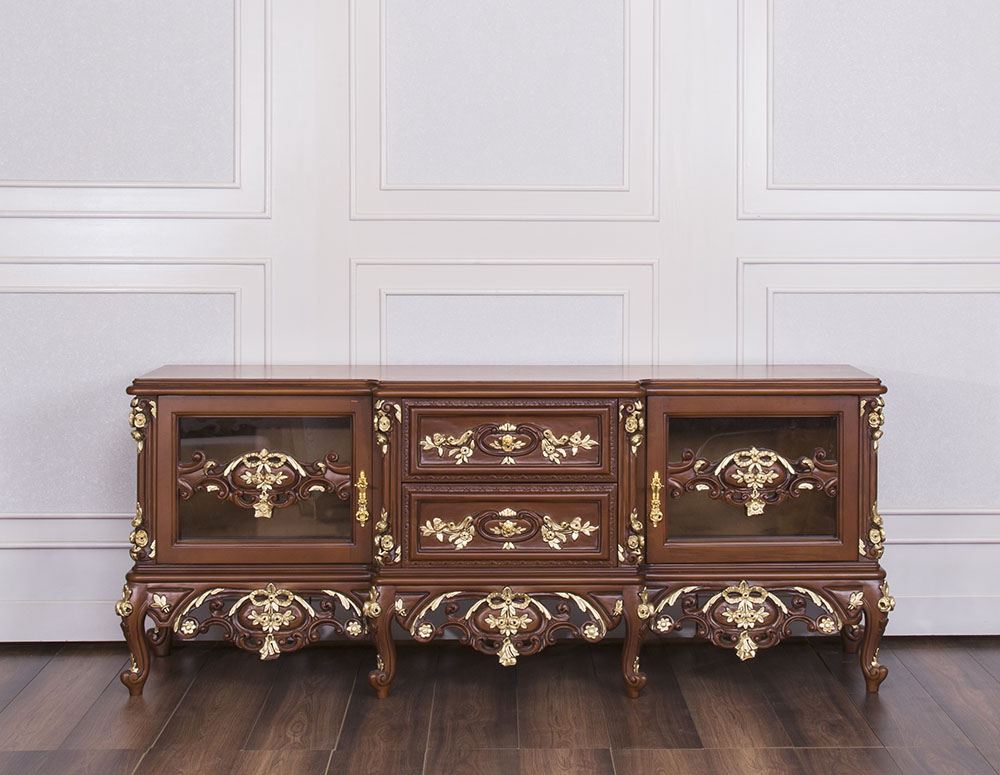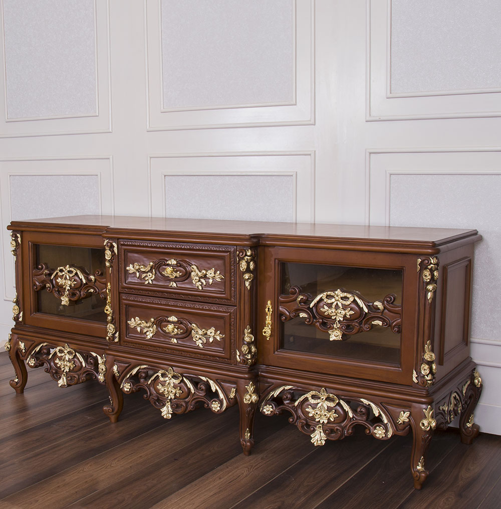 Baroque Style Tv Unit with sideboard 'SETH' has been designed with Elegance in a Dark wood with gold details.