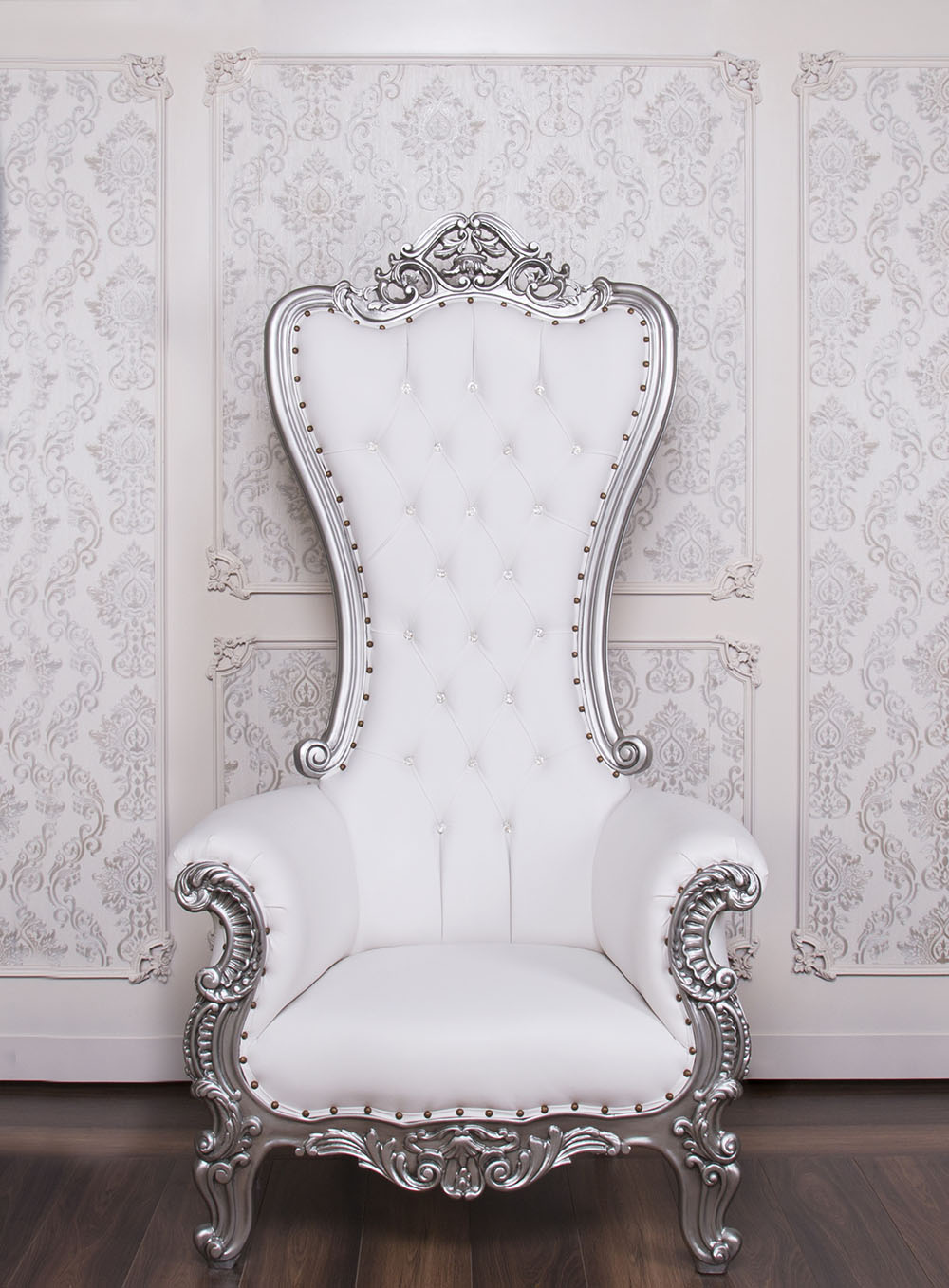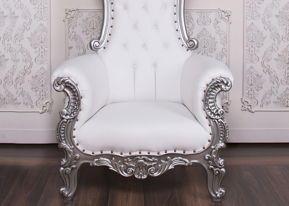 Our Ornate Throne Chair is Hand crafted and carved to magnify the Lavish detail. Designed by Experts to create luxury and comfort, whether its for a Wedding to become King and Queens for the day or to Brighten your room at home to create a lavish royal atmosphere for your bedroom/boudoir or even your hall way to show sparkle and extravangence.