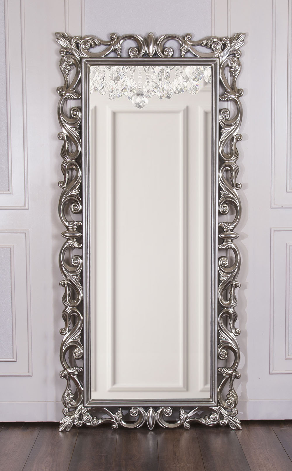 BES is our baroque style floor standing mirror which is a versatile mirror for any room to element space with luxuriousness.  Finely crafted and lacquered in either gold, silver or white for contemporary living, this mirror will enhance your living area for either a vintage or modern look.