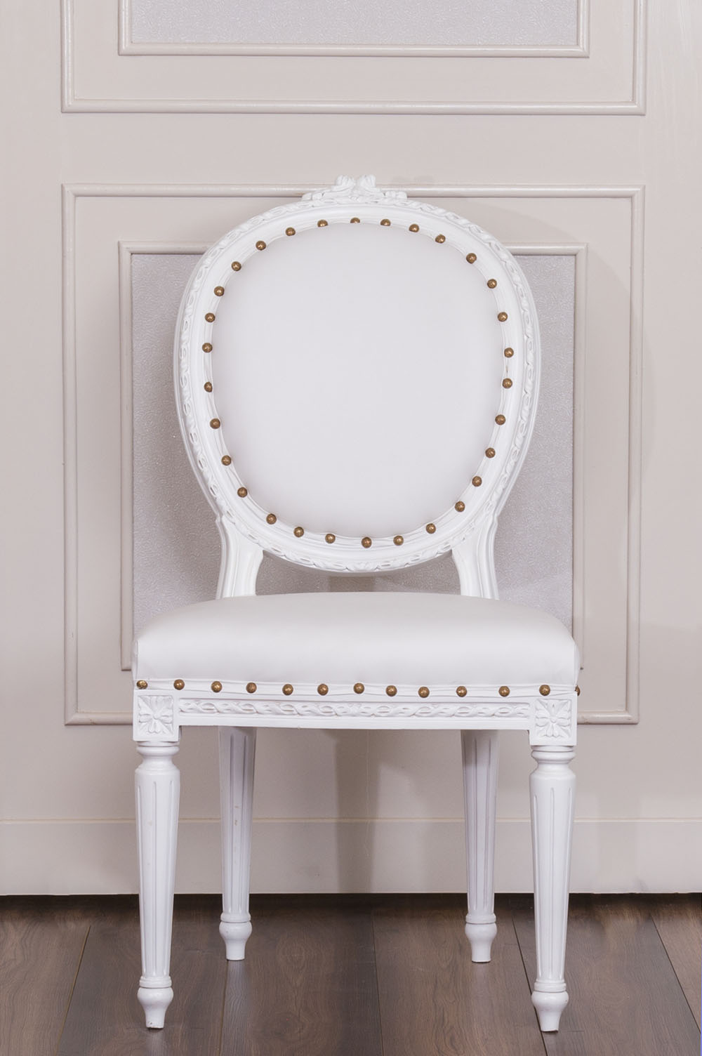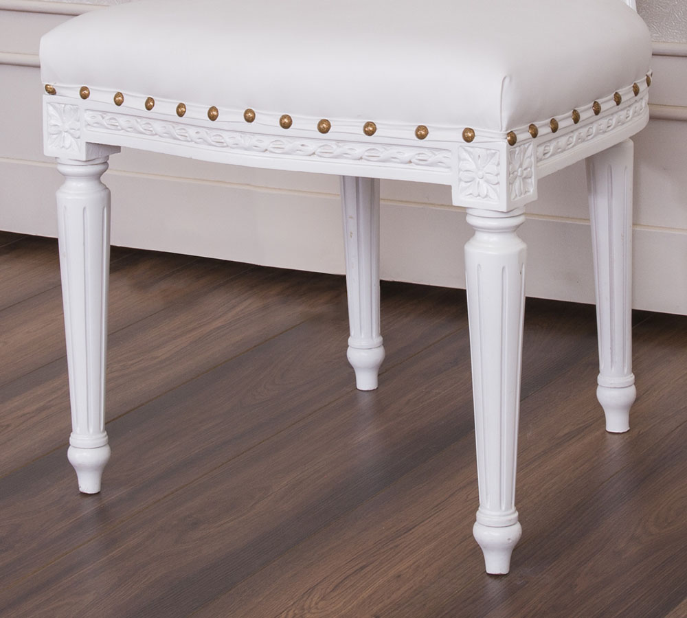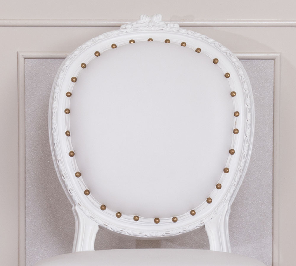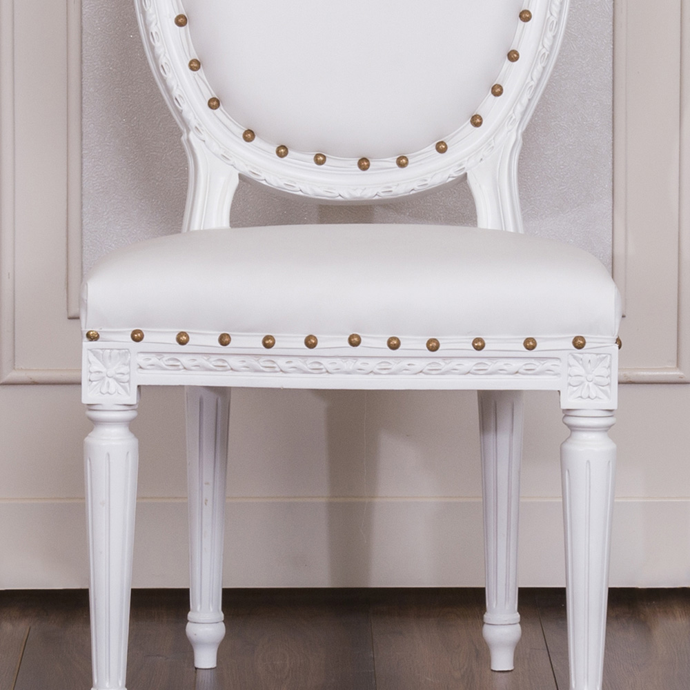 Antique Style Dining Chair with a White wooden Frame and White Faux Leather to bring the flavour of East to your luxury living.
